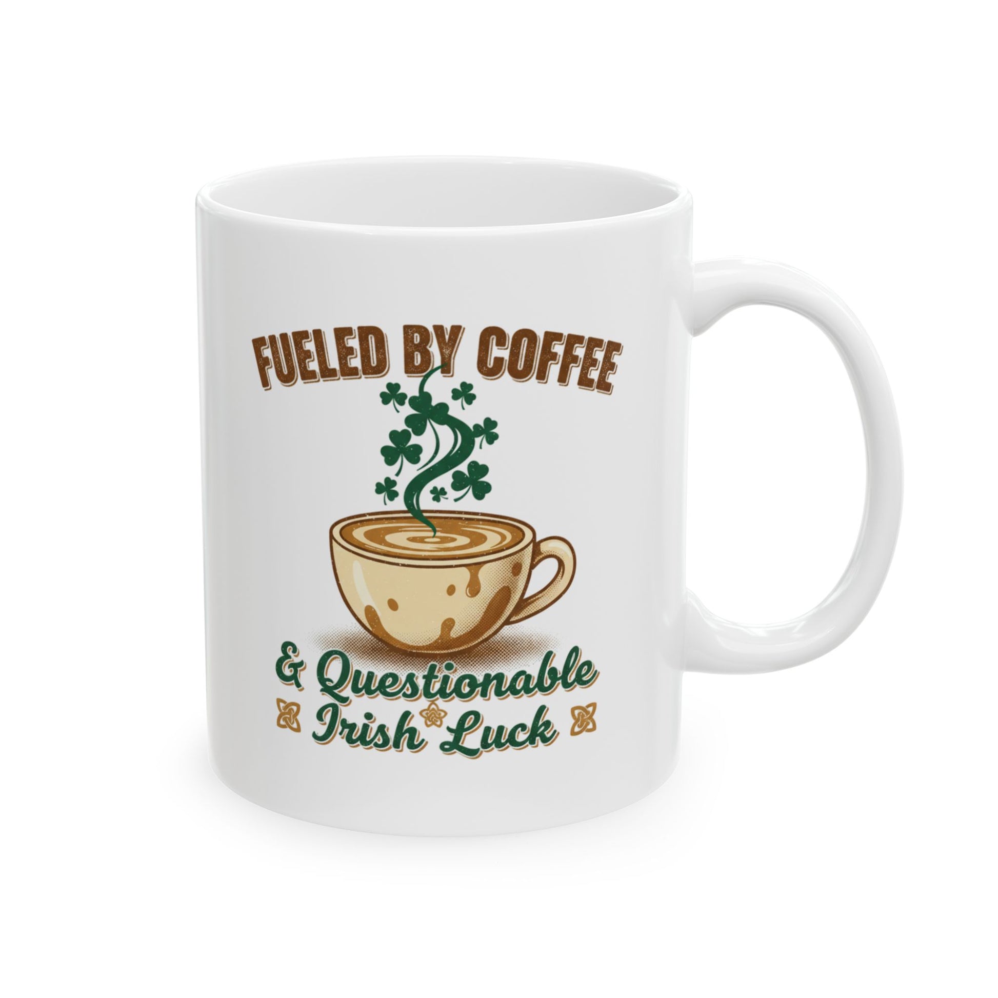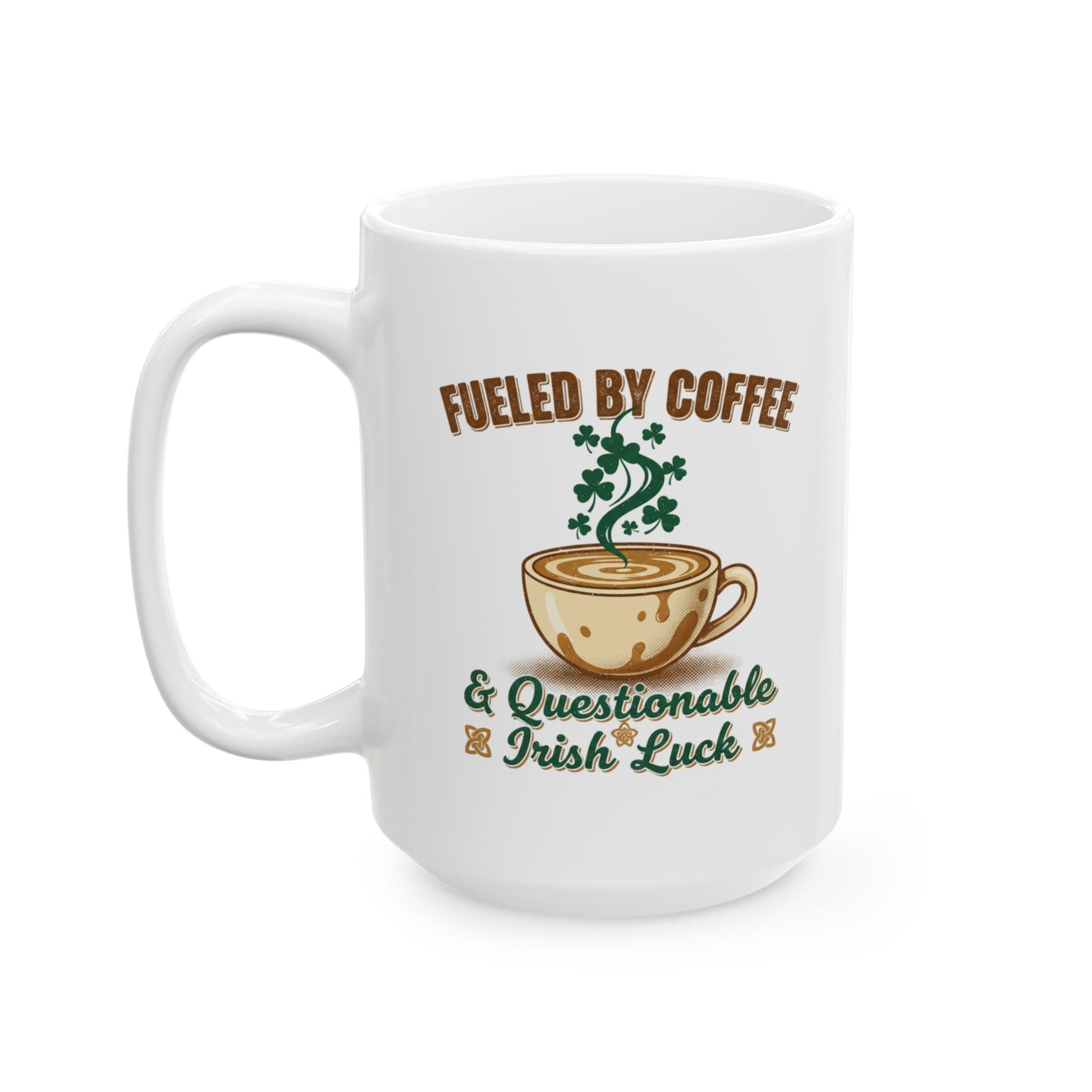 Fueled by Coffee & Caffeine and Irish Luck Ceramic Mug — Retro St. Patrick’s Coffee Gift (11oz, 15oz)