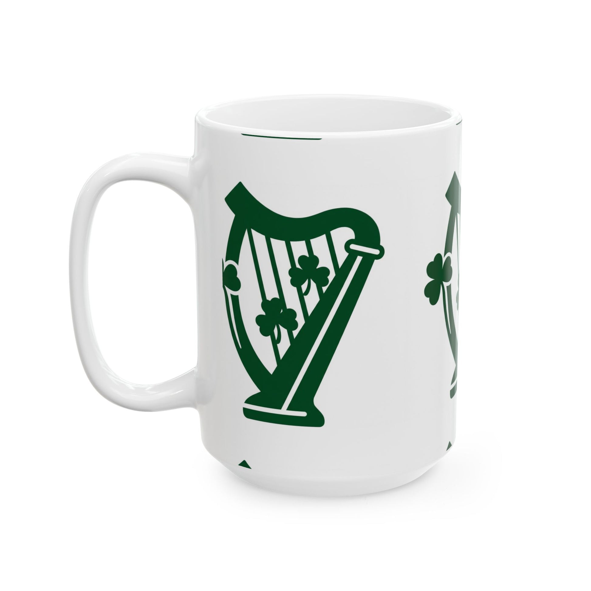 Shamrock Harp Ceramic Mug — Irish St. Patrick's Day Coffee Cup (11oz & 15oz)