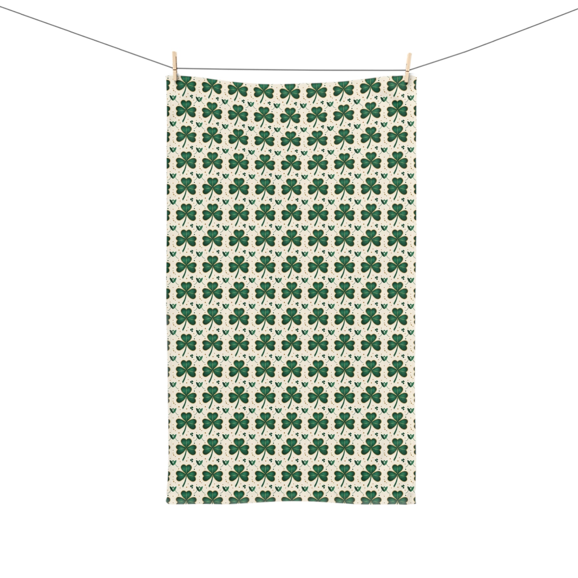 Shamrock Pattern Hand Towel — St. Patrick's Day Green Clover Kitchen Linen